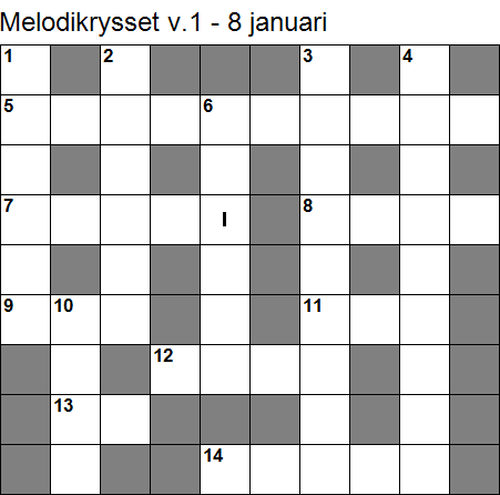 Jag ser att du är inne i SR Play-appen, visst har du även Melodikryssappen nedladdad på din telefon? När du öppnar appen för Melodikrysset kommer du se följande vy och kunna lösa krysset för vecka 5: